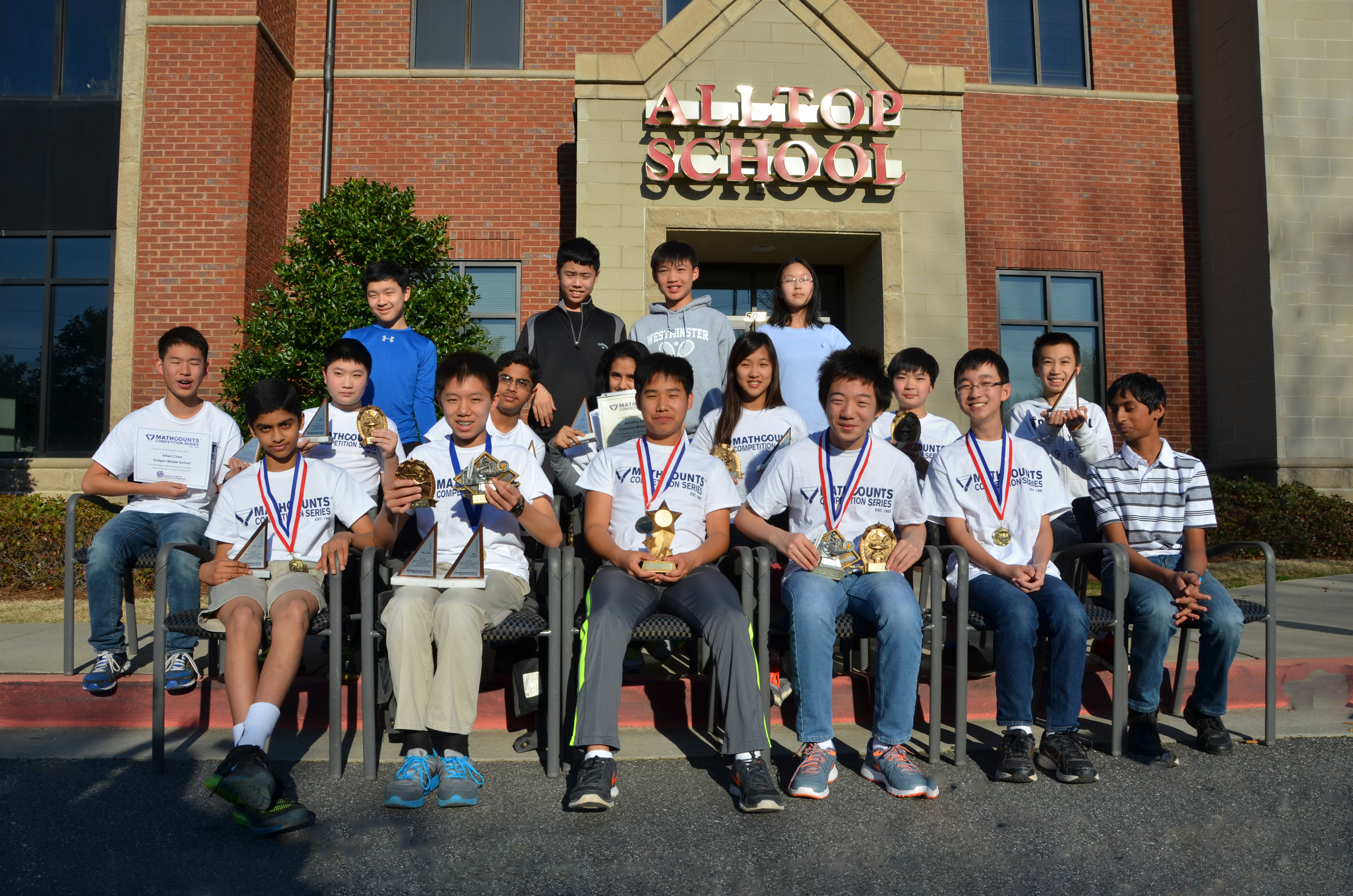 River Trail Middle School这次再次获得了全州团体第一名。River Trail Middle School每一位参赛的同学都就读于陈广华全A学校的培训班。这次比赛的冠军Luke Zhuo来自Autrey Mill Middle School。Autrey Mill Middle School的带队老师Mrs. Potts说,我们学校将继续把上Alltop School比赛培训班 作为进入Autrey Mill Middle School 数学Club的一项必要前提(Requirement)。